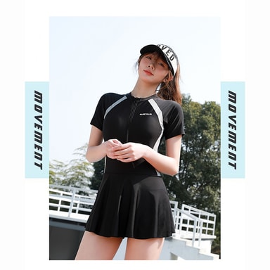 Hurtigtørkende stoff: Polyester-spandex-blandingen gir ikke bare en komfortabel passform, men gir også hurtigtørkende egenskaper. Denne funksjonen sikrer at du holder deg komfortabel selv etter svømming, da stoffet transporterer bort fuktighet og tørker raskt. Si farvel til den ubehagelige, fuktige følelsen og nyt bekvemmeligheten av en badedrakt som er klar til bruk når du er det. Denne hurtigtørkende badedrakten er perfekt for reiser eller hyppig bruk, og er et must for enhver vannentusiast.