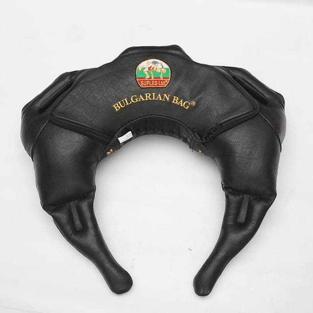 Bulgarsk bag Strong er tilgjengelig i tre forskjellige størrelser, S (5-8 kg), M (8-12 kg), L (12-17 kg). Disse veskene er laget av ekte lær av høy kvalitet, og er supersterke og holdbare. Den nye og innovative Bulgarian Strong er designet for å ta den bulgarske vesken din til et helt nytt nivå. Det nye håndtak designet hjelper deg å øve på bevegelser som er vanskelige å utføre på den originale modellen. De nye stropphåndtakene hjelper også grepet til å vare lenger når du øver på dine dynamiske øvelser. Produktet inneholder 3 ekstra vekter 2 avtakbare håndtak