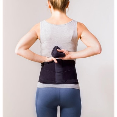 Ryggbeltet har en avtakbar varmepute, hvetepute, som kan varmes opp i mikrobølgeovn eller kjøles i fryser for termoterapi. Støtten sammen med varme i den nedre ryggen øker blodsirkulasjonen og akselererer utvinning og rehabilitering.
