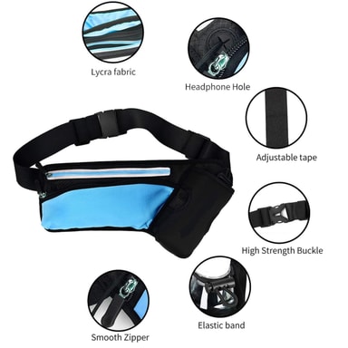 En liten og lett sportslinnepose som har plass til de viktigste dingsene dine. Kjørebeltet er laget av vannavstøtende og tøyelig materiale, med behagelig, justerbar stropp (68 - 92 cm) og to rom for mobil, nøkler, kort og mer. Med en åpning for hodetelefonsnoren og integrert flaskeholder samt en refleks som hjelper deg å se i mørket.