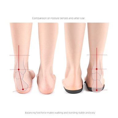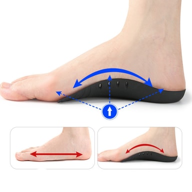 Corrects foot alignment: Disse TPU arch support halv innleggssålene er konstruert for å korrigere fotjusteringsproblemer som overpronasjon (fotrulling innover) og supinasjon (fotrulling utover). Ved å gi målrettet støtte til fotbuen, bidrar de til å stabilisere foten og ankelen, redusere risikoen for skader og forbedre den generelle balansen. Den ortopediske designen oppmuntrer til en mer naturlig gange, og minimerer stress på ledd og muskler. Enten du er en idrettsutøver som ønsker å forbedre ytelsen eller noen som søker lindring fra fotsmerter, tilbyr disse innleggssålene en praktisk og effektiv løsning. De er også gunstige for personer med hallux valgus, hammertær eller andre fotdeformiteter, og gir tilpasset støtte og demping.