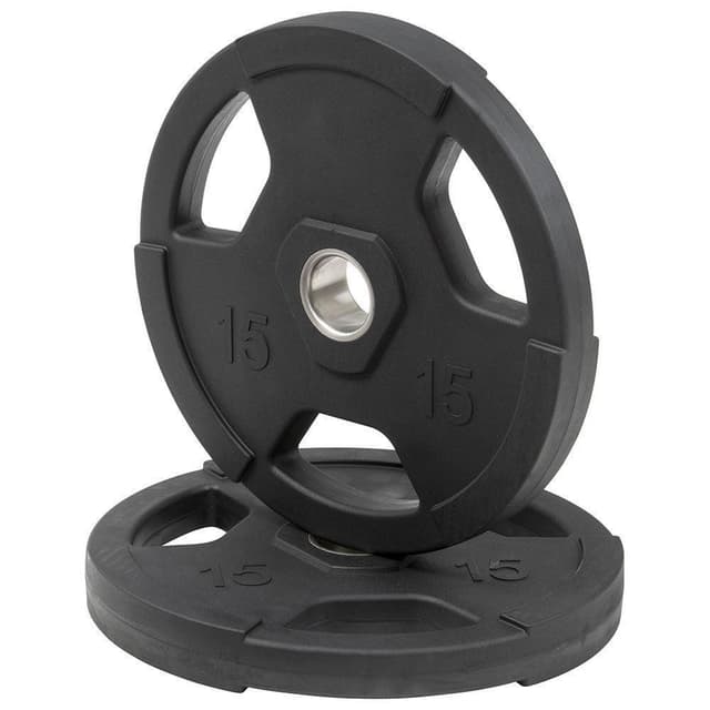Gummibelagt støpejernsskive med grepvennlige håndtak. For 5 mm vektstenger. Selges enkeltvis. Disse vektskivene er laget for bruk i trening og har derfor større feilmargin sammenliknet med vektskiver laget for bruk i konkurranser.
