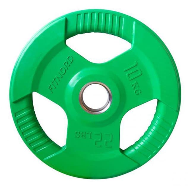 Gummibelagt FitNord vektskive for 50 mm tykke stenger. Produktet er produsert ved hjelp av en unik herdeprosess for å forhindre den karakteristiske lukten til gummivekter. For enkel håndtering er det praktiske håndtak på vektskiven.