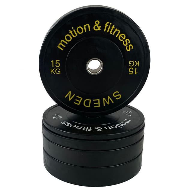 Motion & Fitness svarte bumper vektskiver for kommersiell bruk i klubber og treningssentre. Hulldiameter 50 mm. Ytre diameter 450 mm. Disse vektskivene er altså laget kun i gummi, bortsett fra en jernring like rundt 50 mm-hullet der du har stangen. For å forlenge levetiden for bumper-vektskiver som slippes fra store høyder, anbefaler vi å bruke våre gummigulv eller løfteplattformer.