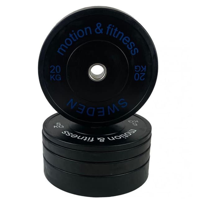 Motion & Fitness svarte bumper vektskiver for kommersiell bruk i klubber og treningssentre. Hulldiameter 50 mm. Ytre diameter 450 mm. Disse vektskivene er altså laget kun i gummi, bortsett fra en jernring like rundt 50 mm-hullet der du har stangen. For å forlenge levetiden for bumper-vektskiver som slippes fra store høyder, anbefaler vi å bruke våre gummigulv eller løfteplattformer.