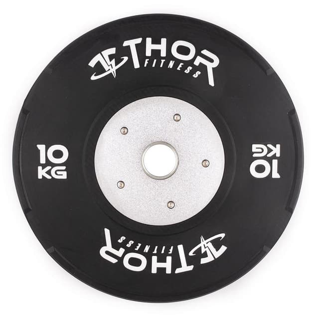 Thor Fitness svarte konkurransebumpere er så gode som det kan bli. Disse platene er kalibrert til en 5 gr feilmargin. Hvis de ikke veier innenfor kravene, blir de ikke sendt! Disse er utviklet for kommersiell bruk der stress og krav til kvalitet er ekstra høye. Platene spretter ikke rundt, men lander og dør pent der de slippes. Senterringen har en tett passform, noe som betyr at platene ikke løsner. For en lang levetid for støtfangerplater som faller fra store høyder, er det aldri galt å ha et godt dempet gulv eller en løfteplattform. 2 års garanti gjelder for disse vektplatene.