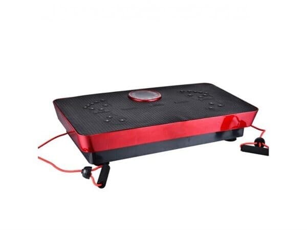 Spesifikasjon - Spenning: AC 220 V - Effekt: 200W - Frekvens: 50/60 HZ - Maksimal belastning: 150KG - Mål: 73x39,5x14 cm - Farge: Svart/Rød - Inkludert i leveransen: Vibrasjonsplate, fjernkontroll, ladekabel, 2 treningsstrikk