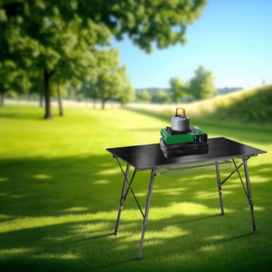Det sammenleggbare campingbordet i aluminium Bastian fra tectake, et must-ha-tilbehør for friluftsentusiaster, blander sømløst funksjonalitet med stil. Perfekt for camping, piknik og festivaler, dette bordet er et essensielt campingmøbel. Det sammenleggbare designet, supplert med en transportbag, gjør den til et praktisk valg for de som setter pris på plassbesparende løsninger i et lite telt. Laget av værbestandig aluminium, den er ideell for alle utendørs omgivelser, sammen med telt, soveposer og annet campingutstyr. Med justerbare ben tilpasser den seg til variert terreng, noe som gjør den egnet for bruk med campingstoler. Dette allsidige bordet hever ikke bare campingopplevelsen din, men er også nyttig for barnas utendørsaktiviteter. I tillegg holder det ekstra nettet tilbehør som klær og små piknikartikler innen rekkevidde, og de gulvvennlige plasthettene tillater innendørs bruk. Et verdifullt tillegg til samlingen av campingmøbler, Tina-bordet tilbyr både kvalitet og rimelighet, noe som gjør det til et smart valg for de som søker praktisk uten å gå på kompromiss med stilen.