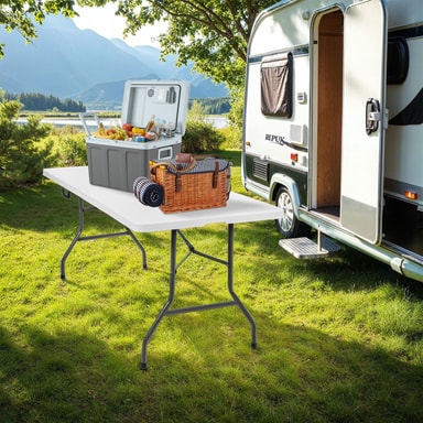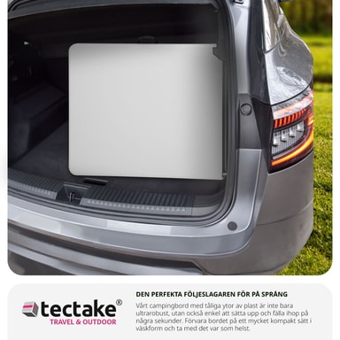 Nyt avspente timer hjemme i hagen eller på vei ved campingen! Med dette sammenleggbare campingbordet er dere rustet på best mulig måte. Bordskiven av plast er motstandskraftig mot fukt og annen miljøpåvirkning. Det sammenlagte bordet kan man folde sammen et par håndgrep og oppbevare på en plassbesparende måte. De sklifrie føttene garanterer at bordet står sikkert på nesten alle underlag, dessuten forhindrer de samtidig at det oppstår risper på gulvet. Understellet av stål er robust og slitebestandig. Kort og godt: Den perfekte ledsageren for hjemmet eller for den neste utflukten deres!