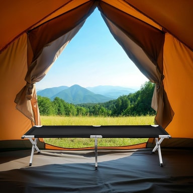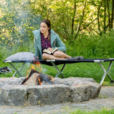 På denne feltsengen kan du få en god nattesøvn på festivaler, campingplasser og utflukter. Takket være foldemekanismen og bærevesken er teltsengen lett å transportere og oppbevare. Feltsengen er behagelig å ligge på, og aluminiumsrammen gjør at den står stabilt. Denne praktiske feltsengen er perfekt å ta med seg på tur.