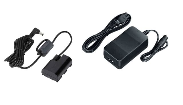 Består av enhetene AC-E6N strømforsyning og DR-E6 batterikobler.