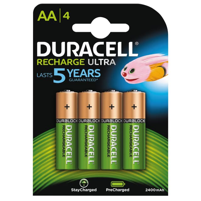 • Duracell Recharge Ultra AA NiMH-batterier (4-pakning)