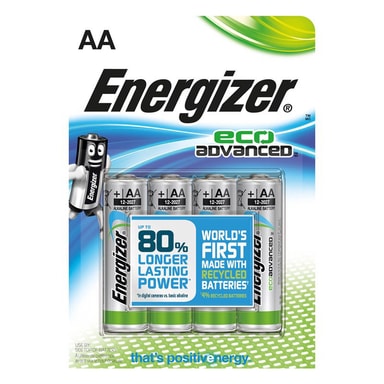 4 pakningen med Energizer AA/LR6 Eco advanced-batterier har lang levetid og gir deg energien du trenger.