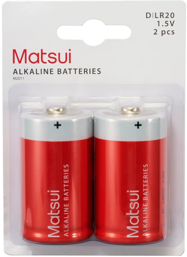 2 stk. 1.5V D-batterier som er kompatible med alle elektroniske enheter som krever D-batterier.