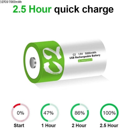 NÖRDIC USB-C C-batterier (LR14) er høykvalitets lithium-ion-batterier med stabil 1,5V utgangsspenning. De lades raskt og enkelt via USB-C på omtrent to timer. Med innebygd beskyttelse mot kortslutning, overlading og overutlading er disse batteriene både trygge og miljøvennlige. Perfekte til leker, lommelykter, radioer og andre enheter som bruker C-batterier.