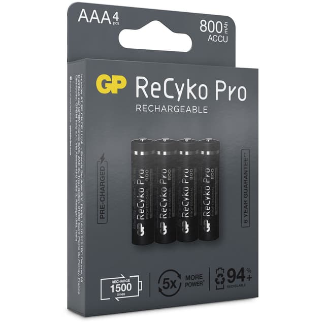 GP ReCyko Pro AAA-batteri, 800 mAh, 4-pakning