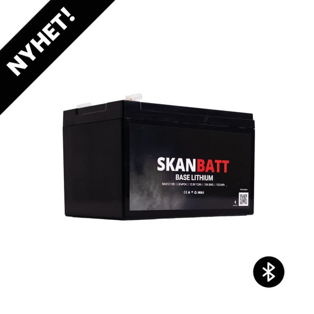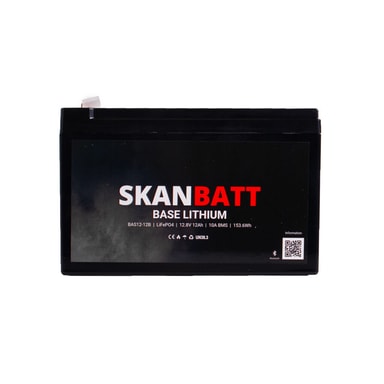 SKANBATT Base Lithium - 12V 12Ah 10A BMS - 151x98x96mm - Bluetooth - 3 Års garanti