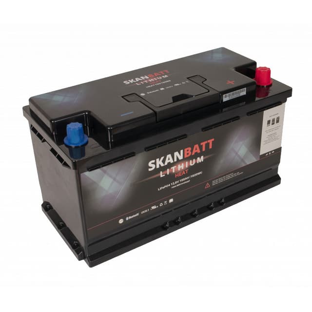 SKANBATT Lithium HEAT Batteri 12V 150AH 150A BMS - Bobil - Bluetooth NYHET! 12V 150Ah Bobilbatteri - i 95Ah ""passer-under setet-kasse"" - med spesialløsning for smålading i kuldegrader, og automatisk varmesystem. HEAT-150150BS er et glimrende lithium batteri som er beregnet til forbruk i bobil, båt, hytte, camping eller andre strømkrevende applikasjoner. I hytter med solcelleløsninger så er dette batteriet perfekt, da det slipper inn noe lading også i kuldegrader, men vil aktivere varmesystemet automatisk dersom man lader med aggregat.