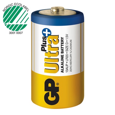 GP Ultra Plus alkalisk D-batteri, 13AUP / LR20, 2-pakke
