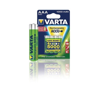• Varta Oppladbare Ni-MH batteri AAA | 1.2 V DC | 1000 mAh | Forhånds ladet | 2-Blisterkort