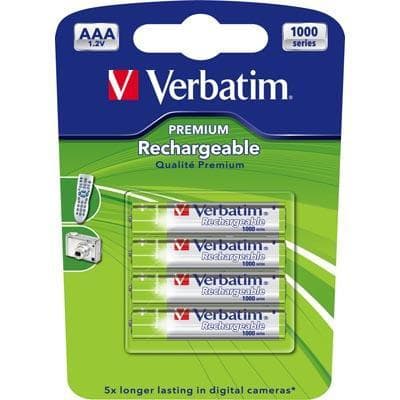 • Verbatim laddningsbar batterier,AAA(LR03), 4-pack, Ni-MH, 1000mAh, 1,2