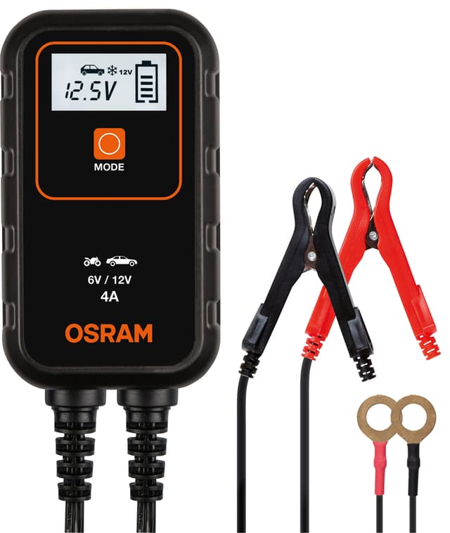 Osram batterilader til bil 6120041 lar deg lade bilbatteriet ditt trygt og enkelt. Batteriladeren har en maksimal strømeffekt på 4A. Kontroller hele prosessen på den intuitive skjermen, mens flere sikkerhetsfunksjoner sørger for trygg lading.Les mer om produktet