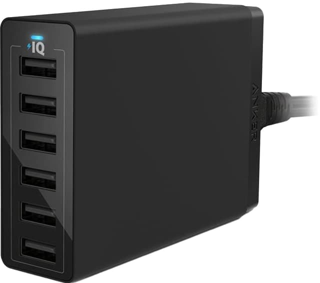 • Anker PowerPort 6 multiport USB-A-lader (sort)