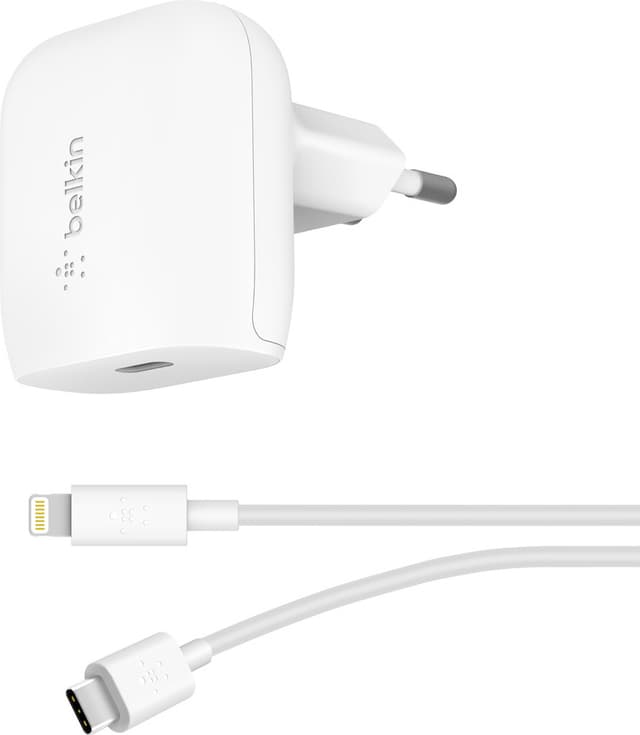 • Belkin 20W vegglader + USB-C til Lightning-kabel (hvit)