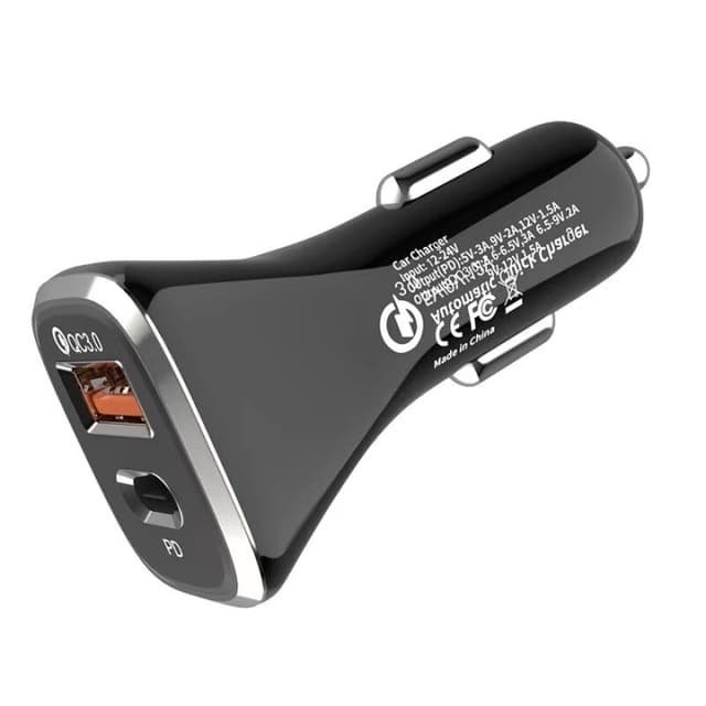 Unngå krangling om hvem som skal lade i bilen, med denne kan opptil to personer lade samtidig. Den er også en hurtiglader, slik at mobilen din lades opptil 50 % raskere