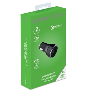 ProPower billader med 2 USB-porter lar deg raskt lade enhetene dine. Maks 42W. Takket være Power Delivery-teknologi kan du lade smarttelefonen og nettbrettet på under en time * via den dedikerte USB Type-C-porten (opptil 24 W). Lad to enheter samtidig med maksimal hastighet takket være den andre porten, en Quick Charge 3.0 USB-port (opptil 18W). Sjekk kompatibilitetslisten på.
