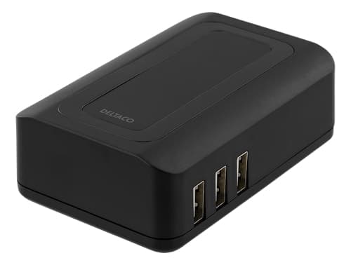 DELTACO USB ladestasjon med 6 USB-porter, 240V-5V USB, 6.4A, LED-indikator, svart