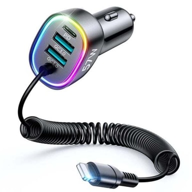• Innebygd 1,6 m Lightning-kabel + USB-C og 2×USB-A