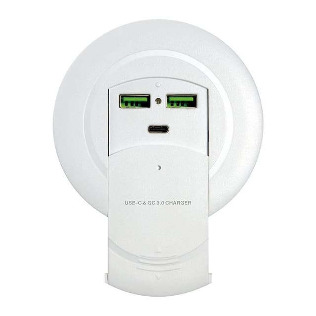 Last bærbare datamaskiner, tabletter og smarttelefon i konferanserommet uten kompliserte kabler. LS-E3U er montert i tabellen og lar møtet bli effektivt og uten bekymringer. Strømlevering 3.0 Operasjonen av USB C og QuckCharger 3.0 I begge USB garanterer en porter rask ladning uavhengig av port. Teknisk informasjon: Input: AC 100-240V 50 / 60Hz Output: USB C DC5-20V 4,3A 87W Output: USB A DC5 3A / 9V 2A / 12V 1.5A 18W Maks utgang: 96W Dimensjoner: 60mm i diameter Farge: Hvit