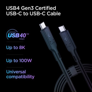 • Spigen Kabel ArcWire™ USB-C/USB-C 0.8m Svart