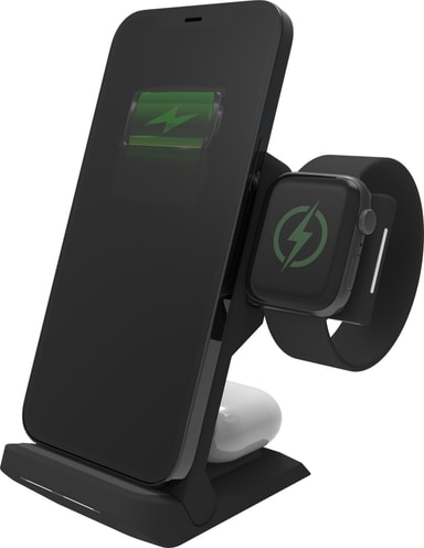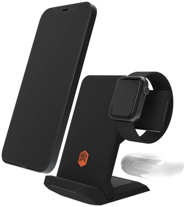Med STM ChargeTree GO trådløs ladestasjon har din iPhone, AirPods og Apple Watch en strømkilde uansett hvor du er. Laderen gir plass til lading av tre enheter samtidig og har et kompakt og sammenleggbart design som lar deg pakke den med deg på farten. Dessuten fungerer den som en ladeplattform selv når den er sammenslått. Den er Qi-sertifisert og lader også Samsung- og Android-telefoner.