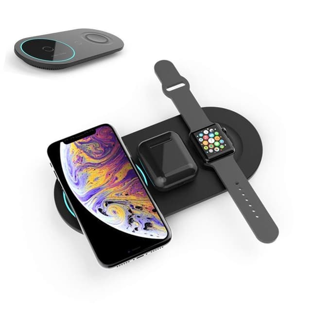 3-i-1 trådløs multifunksjonslader: Denne trådløse Qi-laderen kan lade mobiltelefonen, Apple Watch og Airpods samtidig. En stilig ladestasjon som hjelper deg med å holde orden på skrivebordet eller kjøkkenbenken. Du kan lade alt på ett sted og samtidig og unngå unødvendig mange kabler. Den trådløse ladingen via induksjon fungerer også med tykkere mobildeksler (opptil 8 mm) på.