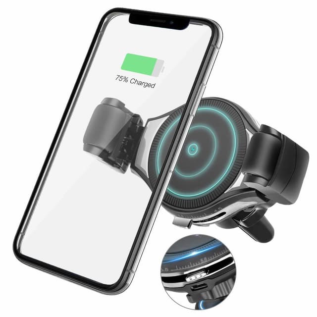 Smart trådløs hurtiglader til bilen som etter en første justering gjenkjenner mobilen din og automatisk tilpasser seg størrelsen på telefonen. Du kan enkelt håndtere laderen med én hånd, og du unngår trafikkfarlig håndtering av mobilen ved å koble kabler inn og ut, og mobilen din er innen synsvidde og i stabil lagring når du kjører. Mobilholderen kan roteres 360 grader, slik at du for eksempel kan ha mobilen i horisontal stilling når du bruker GPS.