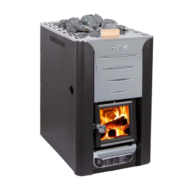 Harvia 20 ES Pro er en praktisk sort badstueovn med en innebygd, lettbetjent vannbeholder på 20 liter. Vannet varmes opp samtidig som ovnen fyres opp til badstutemperatur. Ovnsdøren er i støpejern med stort og solid glassvindu. Stort steinmagasin og varmluftkanaler i rustfritt stål.