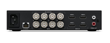 16 channels of embedded audio on all SDI loop outputs and 8 channels on the HDMI outputs.
