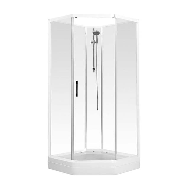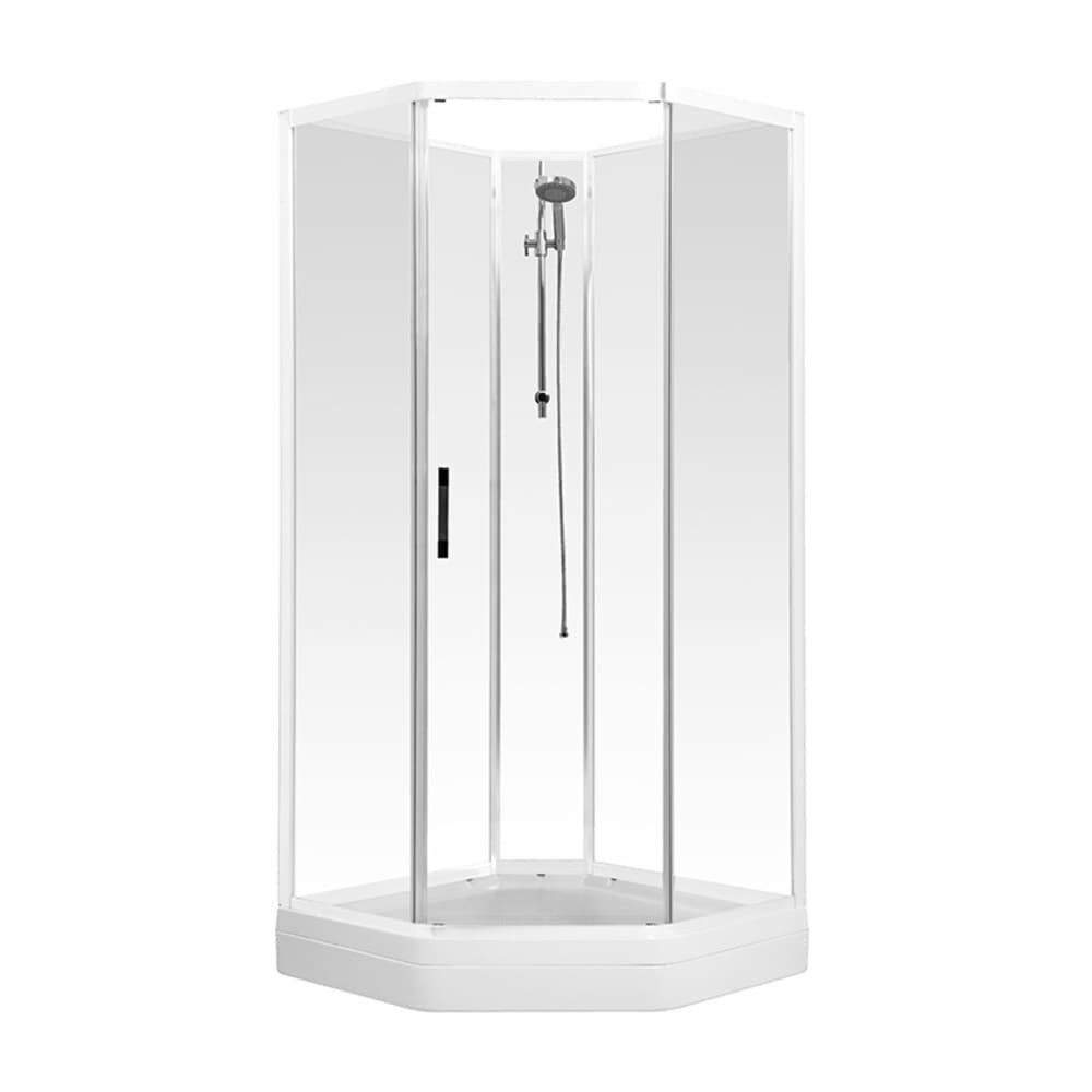 Dusjkabinett Elsa Home er et stødig og solid dusjkabinett som egner seg like godt på hytta som hjemme. Elsa Home har en praktisk 6-kantet form som gjør dusjingen enda mer komfortabel og samtidig tar det seg flott ut på baderommet. Dusjkabinettet Elsa leveres i hele elementer for rask og enkel montering. Stilrent design og høy kvalitet - hjemme eller på hytta! Dusjkabinettet har profiler i hvitlakkert aluminium, og en solid og stødig konstruksjon. Dusjen har doble justerbare trinser både oppe og nede på døren. Dusjstang, slange og hånddusj medfølger. Blandebatteri kommer i tillegg.