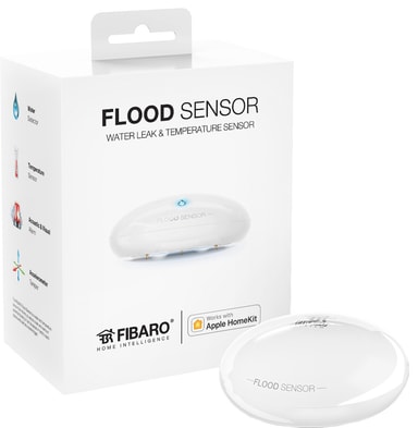 Fibaro flomsensor for HomeKit hjelper deg med å registrere vannlekkasjer og forhindre skade, og sender et varsel til Apple HomeKit-nettverksenheter for å umiddelbart varsle om at noe skjer. Den er batteridrevet og støtter Apple Siri. Tilbehøret er vaskesikkert, noe som betyr at den flyter på vannoverflaten og fortsetter å sende et hørbart alarmsignal ved store lekkasjer eller ved flom.