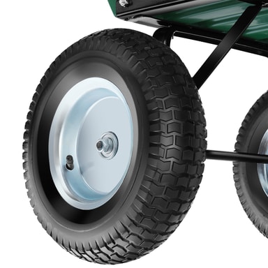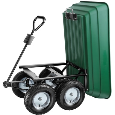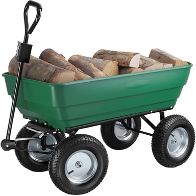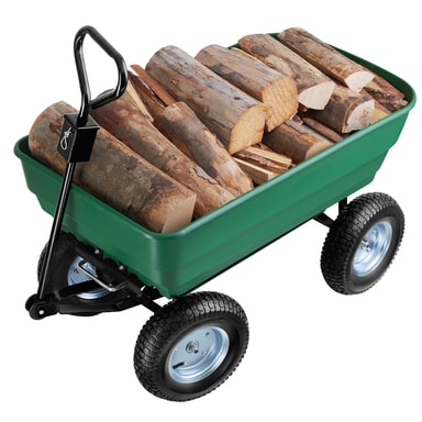 Denne funksjonelle håndvognen fra tectake er svært anvendelig og fleksibel og kan derfor brukes til mye slags hverdagsarbeid. Den solide rammen i stål og den lukkede karet i slitesterk plast passer perfekt når du skal transportere ulike materialer, alt fra hageavfall til fin sand. Styreaksen er lett å manøvrere og de luftfylte profildekkene gjør at du lett kan styre og trekke vognen uten å bruke unødvendig mye kraft. En annen fordel er at denne stabile lastekjerren kan vippes. Dermed kan du lett plassere lasten akkurat der du ønsker det.
