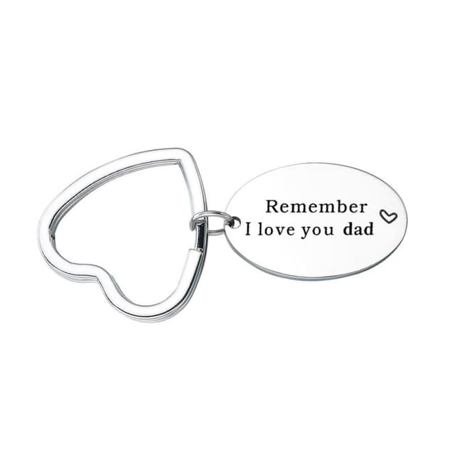 ""Husk at jeg elsker deg, pappas graverte nøkkelring, uttrykk din kjærlighet til faren din varmt og kjærlig. Den passer som gave til fars bursdag, farsdag, høsttakkefest og andre viktige dager.