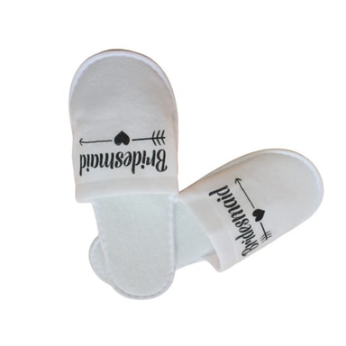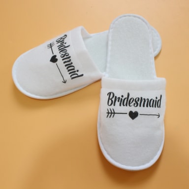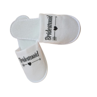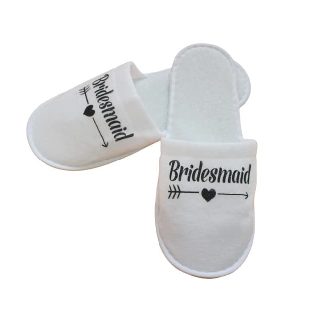 Elegant design: Med 'Bridesmaid'-tekst i gulltrykk, gir disse tøflene et elegant preg til ethvert bryllupspyjamasparty. Designet er både stilfullt og funksjonelt, og passer perfekt for brudepiker som ønsker å slappe av med stil. Den nøytrale hvite fargen gjør at de passer til de fleste pyjamaser og antrekk. Disse tøflene er ikke bare komfortable, men også et flott minne fra en spesiell anledning. De kan også brukes som en del av en gavepose til brudepikene.