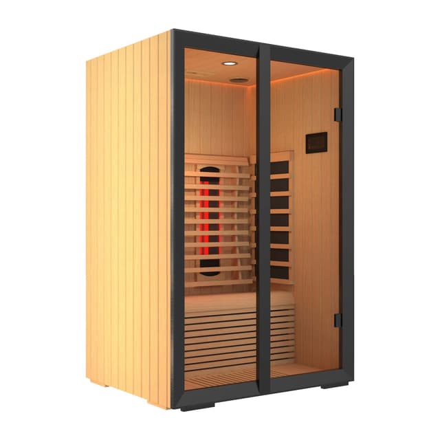 Harvia Onni Small infrarødt badsturom er en elegant infrarød kabin designet for maksimal komfort og velvære – ideell for ett eller to personer som ønsker en avslappende varmeopplevelse hjemme.