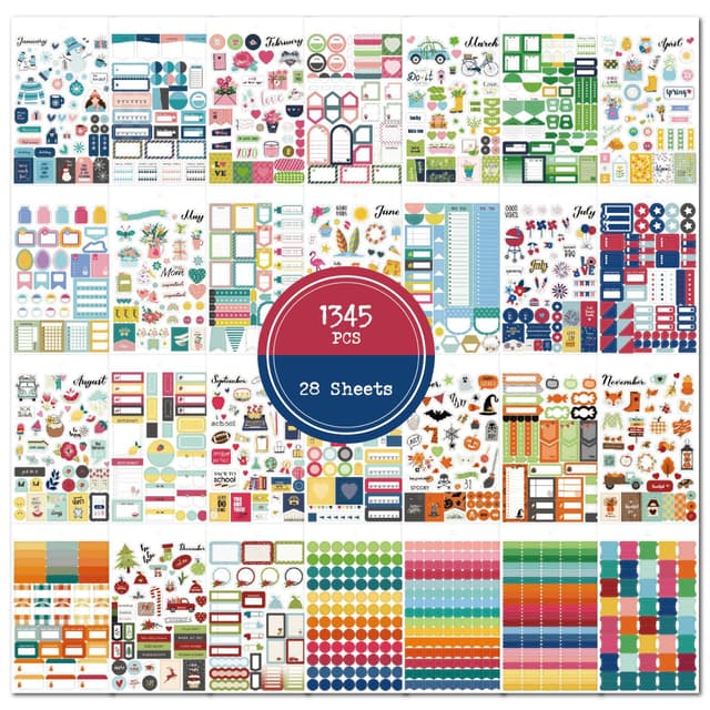 Rikelig med klistremerker: Dette settet inkluderer sjenerøse 1345 klistremerker, som gir mange muligheter for alle dine planleggings- og dekorasjonsbehov. Du har mer enn nok til å tilpasse planleggeren, journalen, den bærbare datamaskinen og mer.