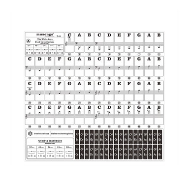 Universell kompatibilitet: Passer for elektroniske tastaturer med opptil 88 taster, våre klistremerker gir hjelp til elever i alle aldre og ferdighetsnivåer. Enten du akkurat har begynt eller forbedrer ferdighetene dine, er disse klistremerkene et uvurderlig læringsverktøy.