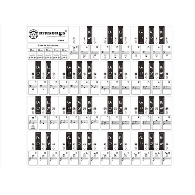 Ikke-klebrig: Piano-klistremerkene er ikke-klebrige, så de vil ikke skade pianotastene dine.