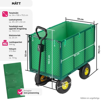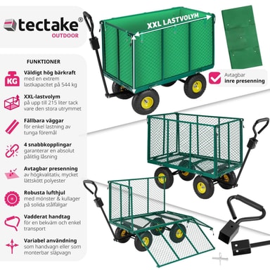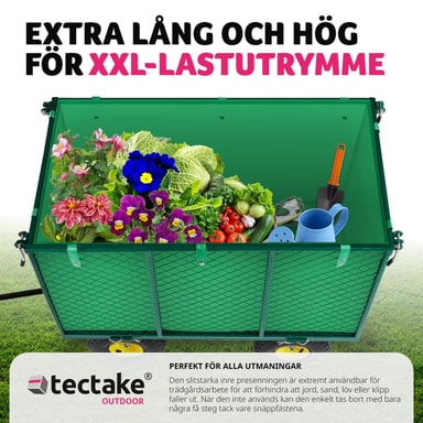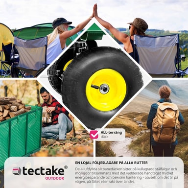 Til utflukten, i hagen eller på byggeplassen: Denne trallevognen fra tectake er det perfekte valget til nesten alle typer transport. Den robuste håndvognen tåler last som er opptil åtte ganger vognens vekt. De brede, myke dekkene i plast på denne offroad-vognen kan fint brukes på sandgrunn. Den robuste håndvognen fra tectake kombinerer høy bæreevne med lett transport og er lett å trille i ulendt terreng.