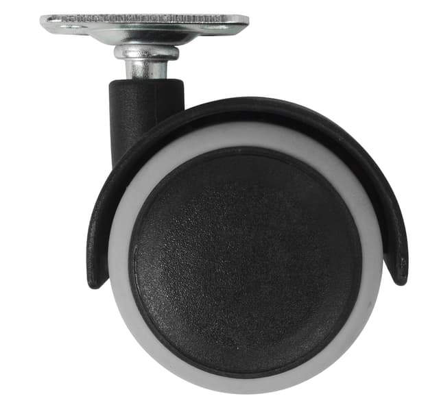 Svart och grått plasthjul till plåtfäste Svängbart Hjuldiameter: 50 mm Hjulbredd: 54 mm Belastning: max. 40 kg Montering med plåtfästeLes mer om produktet